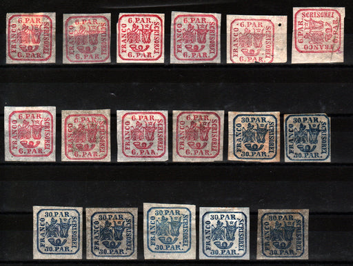 1,250.00 lei RONRomania 1862 Principatele Unite tipar de mana serie completa 30PAR hartie vargata semnat L. PASCANU