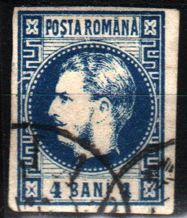 175.00 lei RONRomania 1868 Carol I cu favoriti 4B albastru EROARE catalogata Romb alb in fondul medalionului, dupa linia gatului, in spate