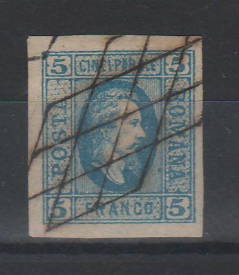 175.00 lei RONCuza 1865 5PAR h. normala stampila FRANCO, cota Michel 350EUR