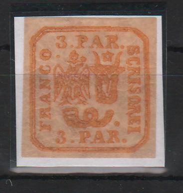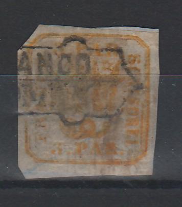 175.00 lei RONPrincipatele Unite 1862 tipar de mana 3PAR pe fragment, stampila FRANCO ROMAN!, cota Michel 350EUR