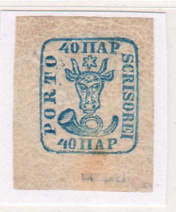 2,700.00 lei RONRomania 1858 Cap de bour emisiunea a II-a 40PAR albastru margini uriase