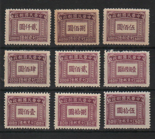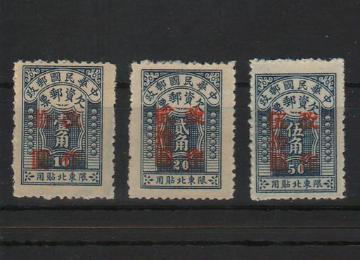 10.00 lei RONChina Northeast Provinces 1947 Postage due stamps MiNr. 1–3 with red overprint new value and 改作 from Central Engraving & Printing Works, Peking