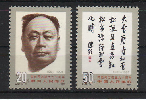 10.00 lei RONChina People's Republic 1991 90th Anniversary of the Birth Chen Yi