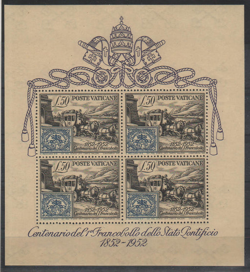 250.00 lei RONVatican 1952 Centenary of the First Stamp Issue of the Papal State Miniature Sheet