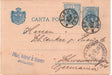 Romania 1895 Carte postala Spic de grau 5 B + 5 B albastru circulata BUCURESTI- SCHWFNNINGEN (Germania)