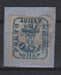 Romania 1858 Cap de bour emisiunea a II-a 40PAR albastru pe hartie alba, stampila FRANCO JASSY albastra, pe fragment. Certificat autenticitate GMACH